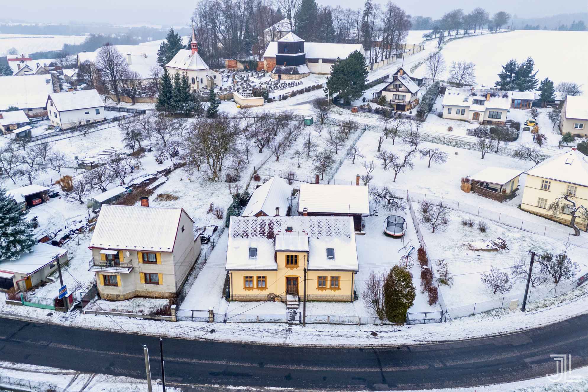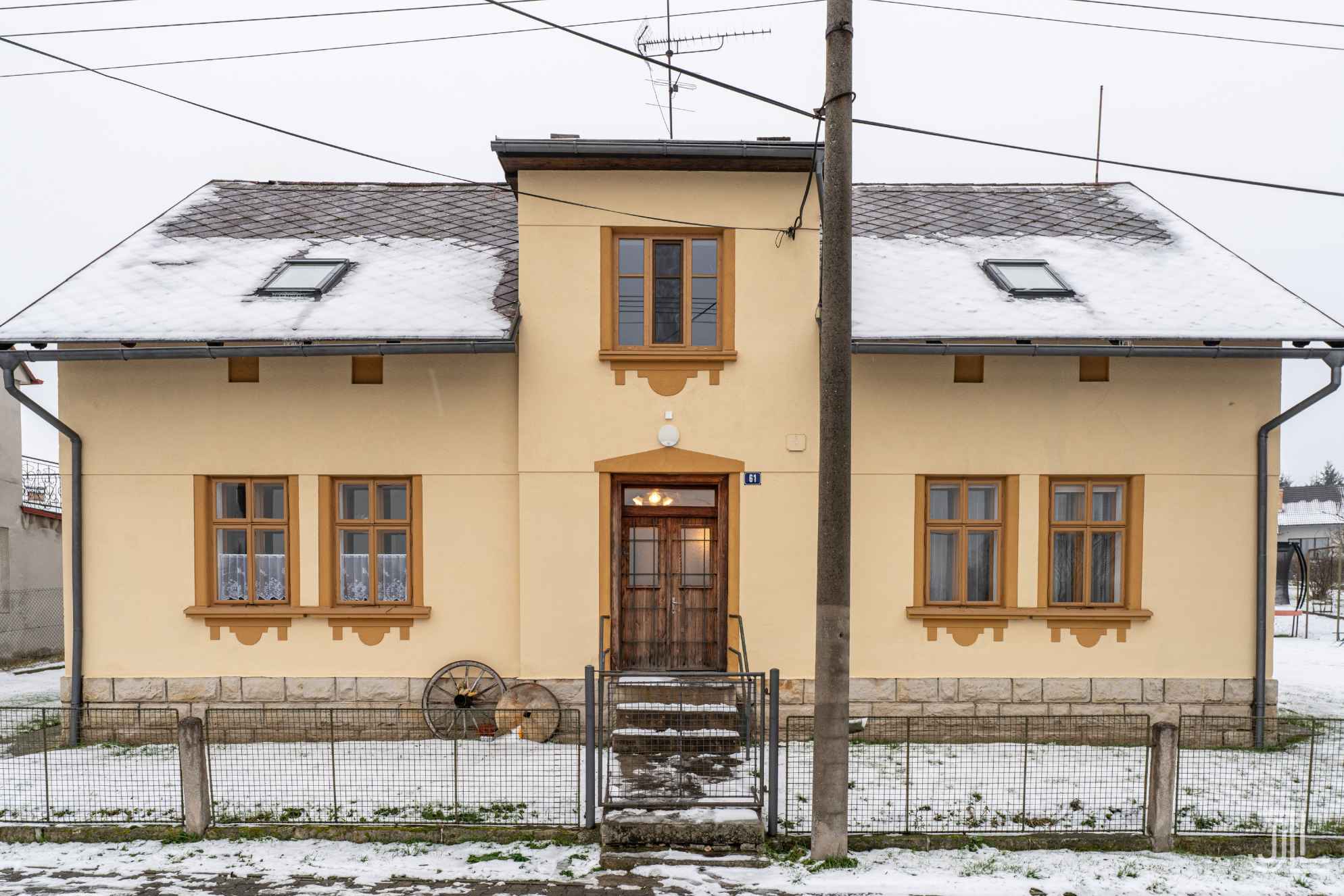 Hlavní budova působí jako pevný, poctivý střed celého statku. Klasická architektura, vysoká okna a rovné linie dávají domu klidný, vyrovnaný výraz.