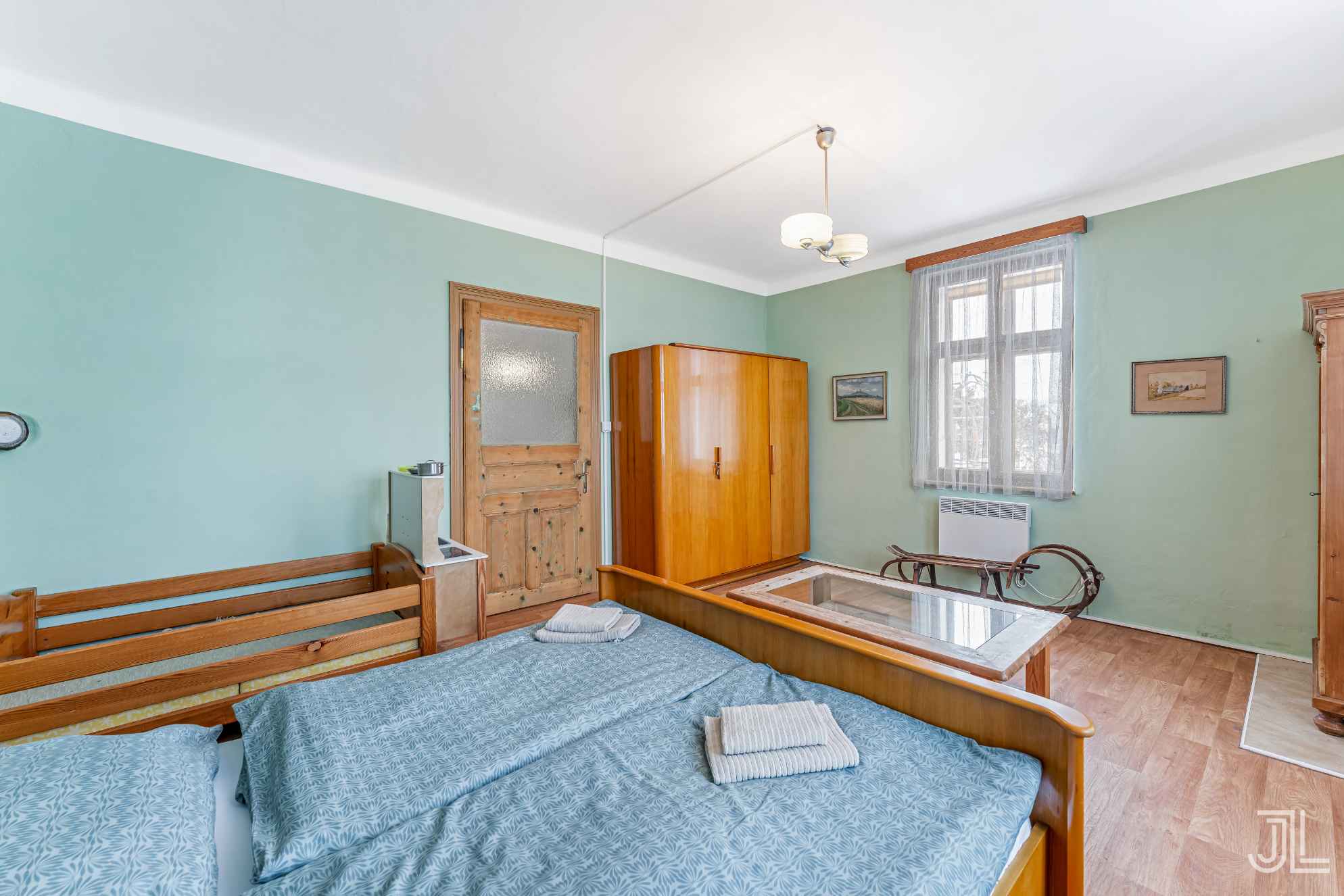 Samostatná místnost v přízemí, která funguje jako ideální zázemí pro majitele nebo správce. Dvoulůžková postel, vlastní klid, dost prostoru a samozřejmě funguje mimo ruch statku.