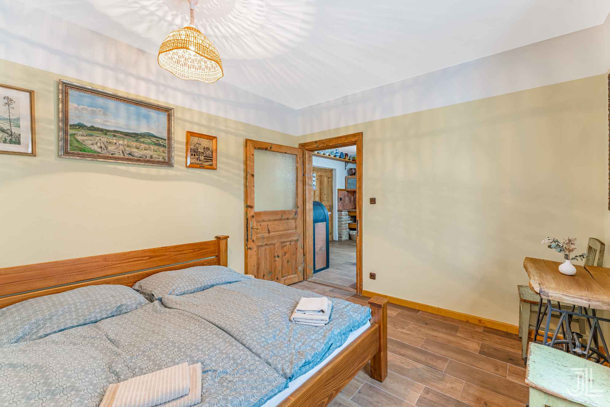 Hned vedle kuchyně najdete samostatný pokoj s dvoulůžkem… praktické řešení pro hosty, kteří ocení blízkost hlavního dění i vlastní soukromí.