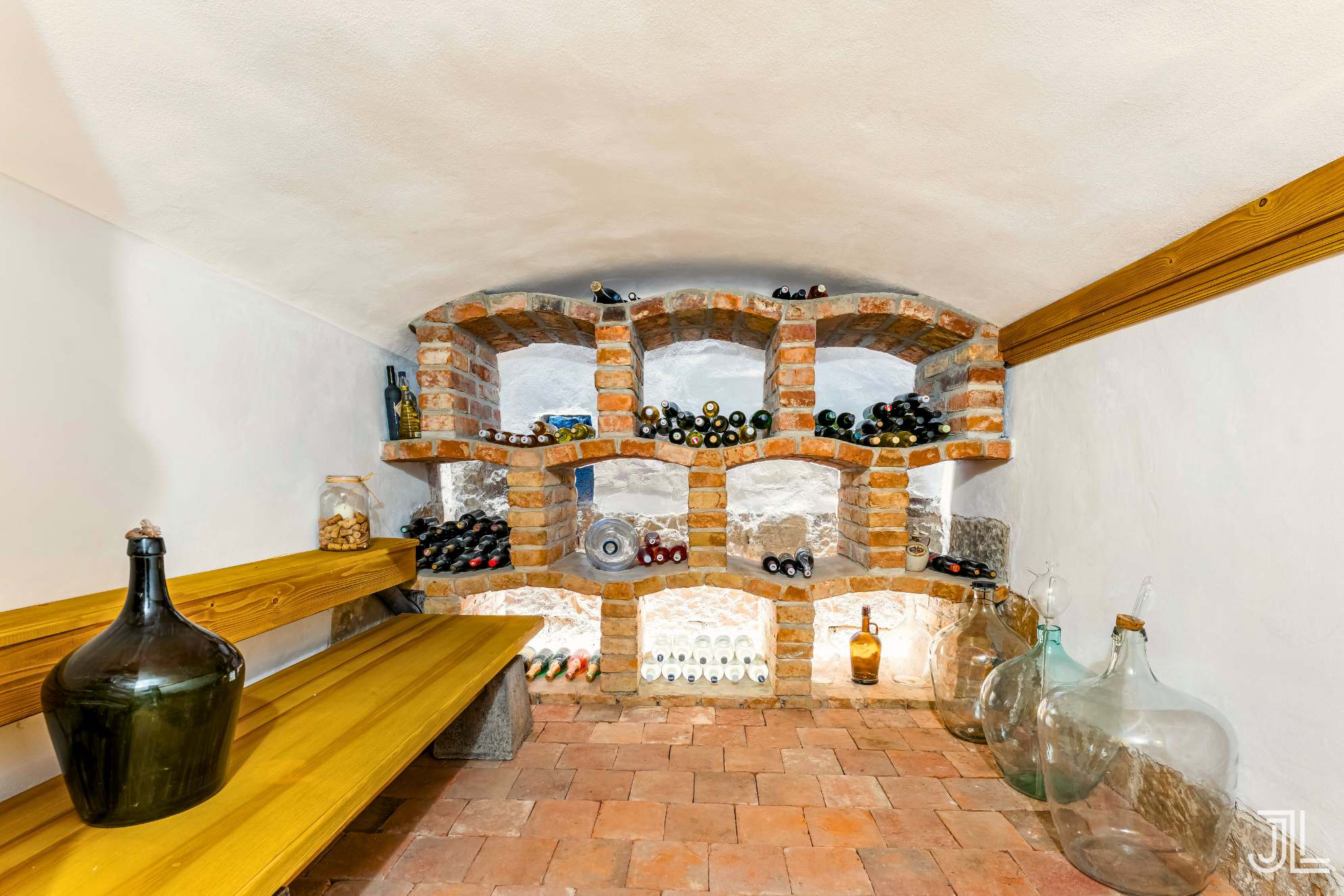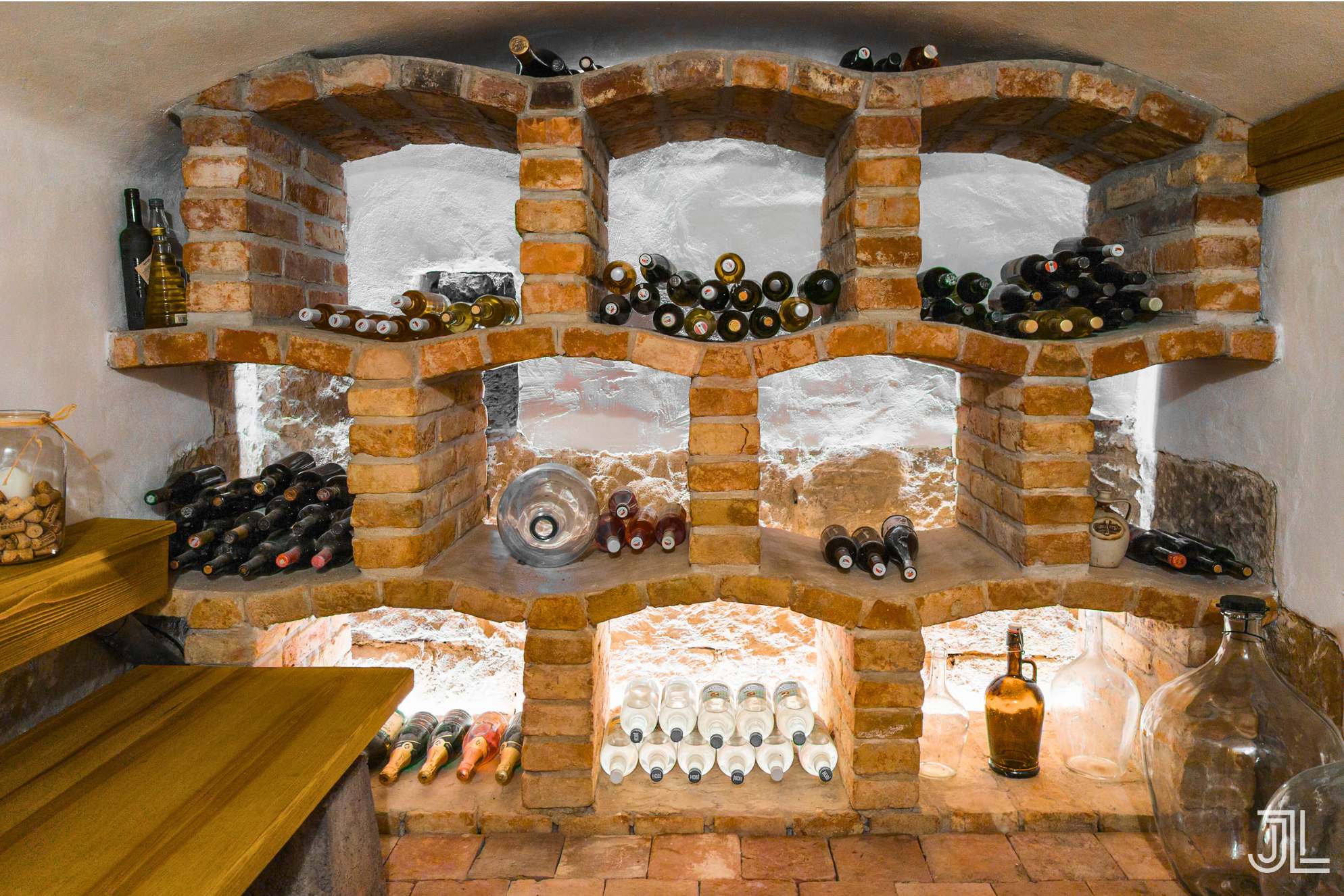 Součástí domu je i udržovaný vinný sklep s původním klenutím a cihlovými regály rozčleněný na několik praktických výklenků. Udržuje přirozenou teplotu a je výborným místem pro uložení vína nebo domácích zásob.