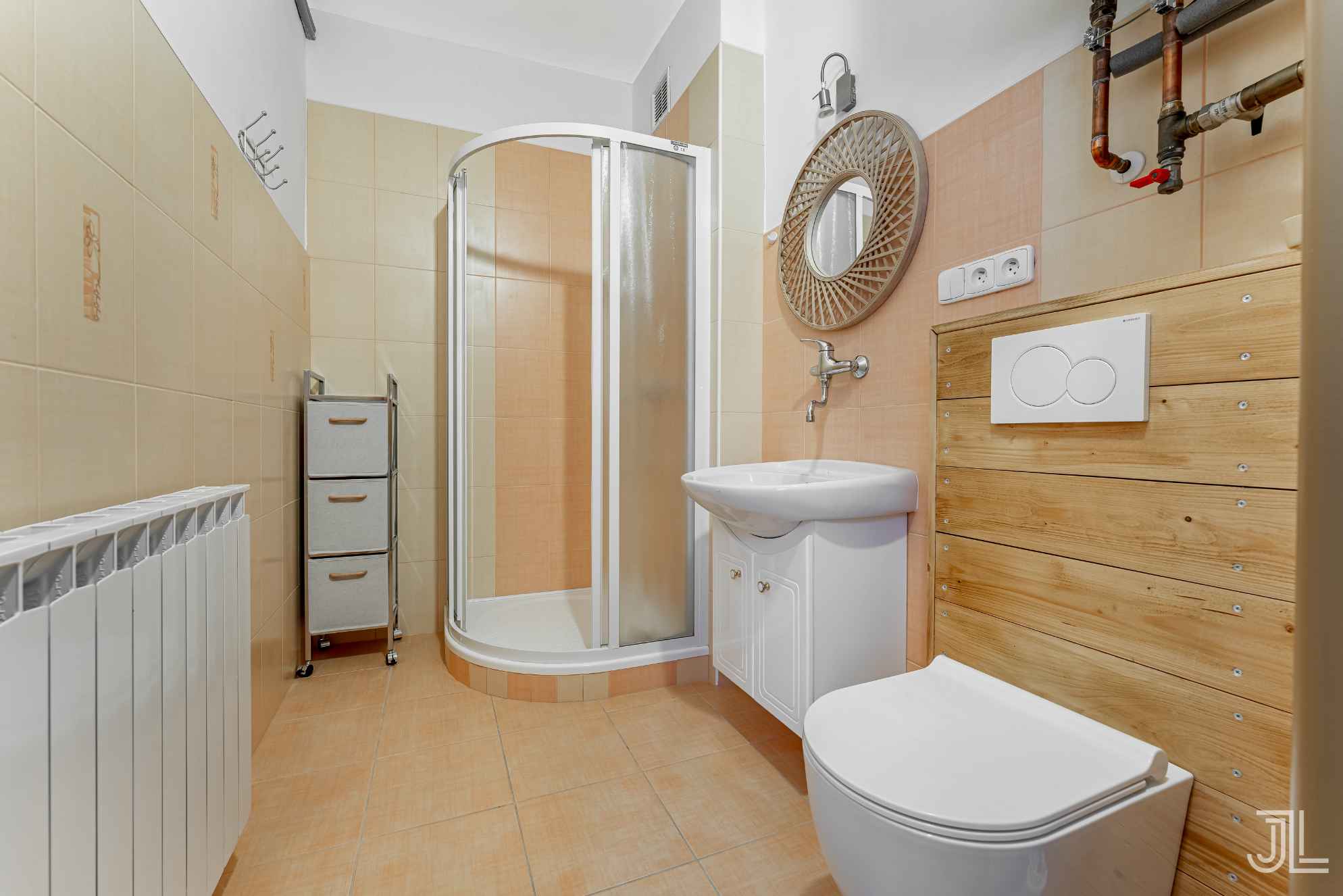 Když se řekne „statek v Českém ráji“, většina lidí si představí hezkou chalupu, která dobře vypadá na fotkách. Jenže tenhle statek funguje jinak. Místo pozlátka nabízí poctivý základ, který drží pohromadě díky věcem, které běžně nejsou vidět… původní samotížné rozvody připravené na napojení výměníku (a tedy možnost topit dřevem do celého domu), ztužené stropy nad kalírnou, vyzděný sklípek po moravsku, vlastní funkční studnu s pitnou vodou i napojení na obecní vodovod, a každý detail, který tady někdo nechal záměrně, protože má svůj účel. A přesně proto dnes tenhle statek není jen „chalupa na víkend“, ale místo, které bez jakéhokoli plánování začalo fungovat i komerčně. Hosté sem nejezdí kvůli fotce na Instagram… ale kvůli atmosféře, Prachovským skalám, Troskám a hlavně prostoru, který si je sám udrží. V létě, v zimě, pořád. Kromě přípravy na výměník jsou v domě i krbová kamna a nástěnné elektrické přímotopy, takže každý pokoj má vlastní regulaci a dům je komfortně použitelný celoročně i bez zásahu do systému.